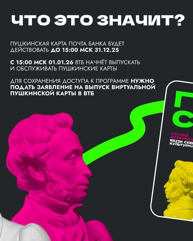 С 1 января банком-оператором программы «Пушкинская карта» станет ВТБ.